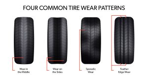 Tires wear differently depending on their position. Front tires typically wear faster due to steering and braking, while rear tires experience different stress depending on drivetrain and load.